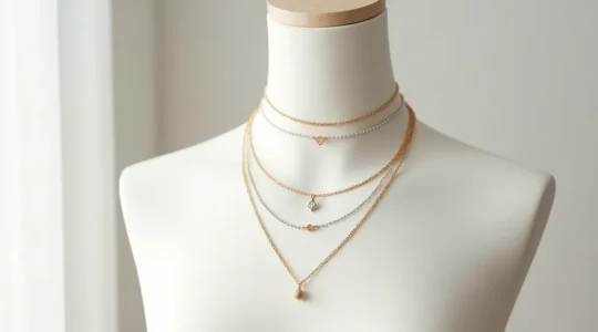 Der Layering-Trend, auch „Necklace Party“ genannt, erlaubt das Tragen mehrerer Ketten gleichzeitig – erfordert aber Verständnis für die Regeln der Längenabstufung. Die ideale Differenz zwischen den Ketten beträgt 5-10 cm, um Verheddern zu vermeiden und jede Kette sichtbar zu machen. Eine typische Dreier-Kombination könnte sein: Choker bei 35 cm, mittlere Kette bei 45 cm, längere Kette bei 60 cm.