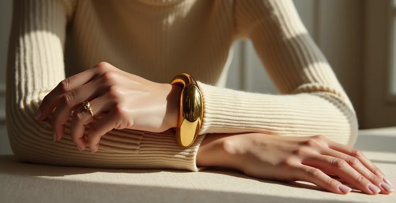 Empfehlung: Wählen Sie einen einzigen, skulpturalen Armreif (Cuff) anstelle mehrerer klimpernder Armbänder, um im Büroalltag Professionalität und Stil zu vereinen.